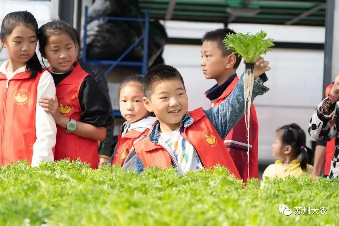 走進(jìn)生長旺盛的蔬菜區(qū)親手采摘,從育苗、移栽、采收都不落下。端詳著剛剛從自己手中的種子變成可以收獲的蔬菜,孩子們明白了家鄉(xiāng)現(xiàn)代農(nóng)業(yè)的真正神奇力量。
