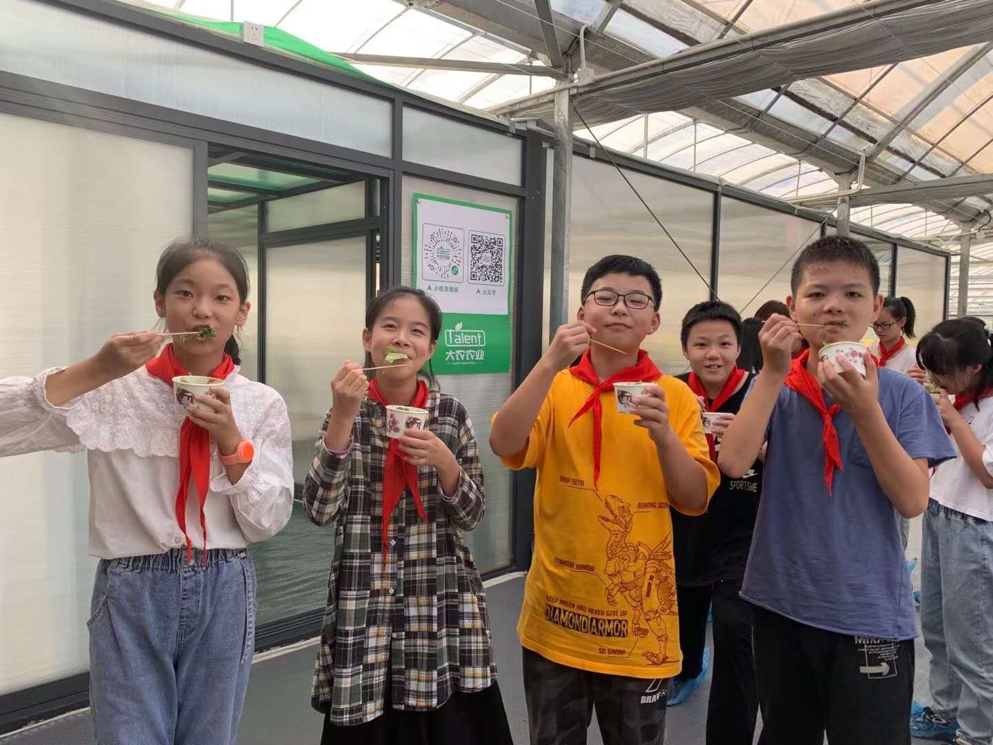 最后,帶領(lǐng)白鹿小學(xué)的老師及同學(xué)們進(jìn)入到大農(nóng)農(nóng)業(yè)水耕種植基地大棚,讓同學(xué)們?cè)诖笈镏杏H身實(shí)踐育苗、移苗、移栽和采收的各個(gè)環(huán)節(jié),同學(xué)們用自己采收的各種蔬菜現(xiàn)場(chǎng)制作了美味營(yíng)養(yǎng)的蔬菜沙拉并且進(jìn)行了品嘗。